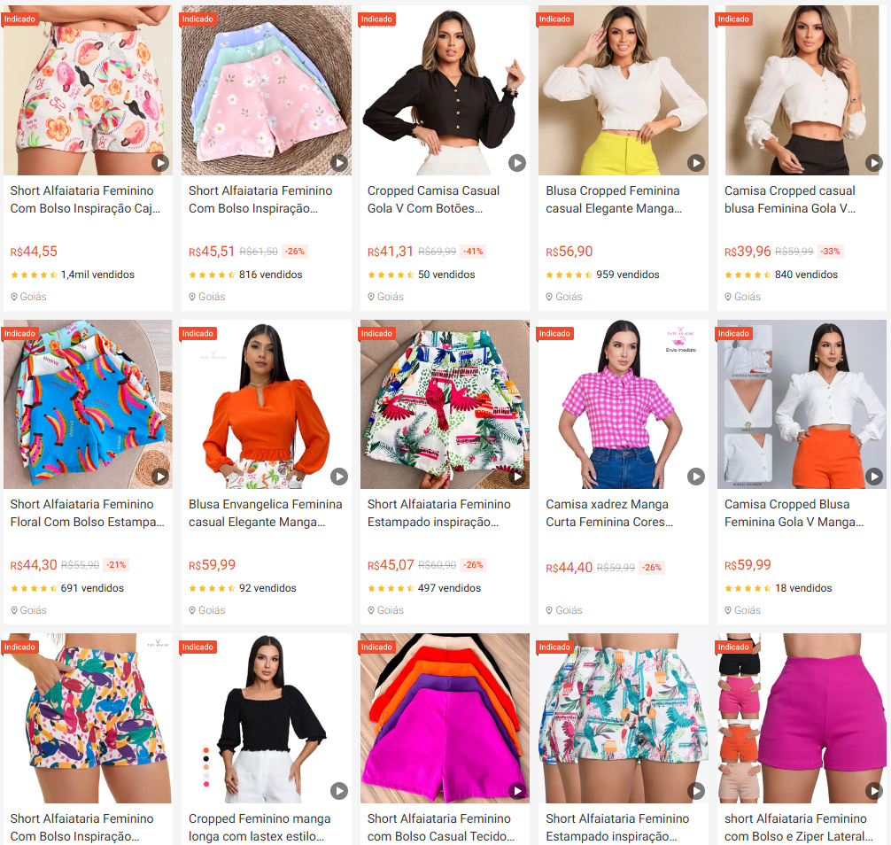 😍 Camisas, blusas cropped, shorts estampados e muito mais.